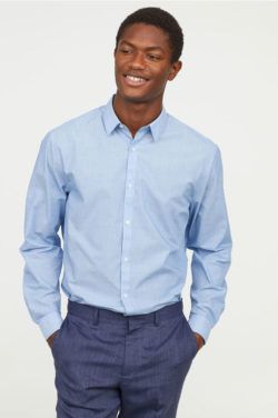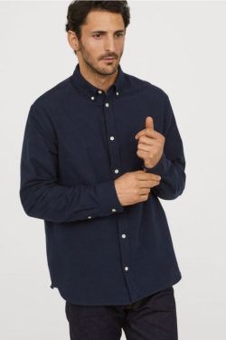 Por otro lado, las camisas del tipo “Oxford” se han convertido en el gran clásico entre las camisas de vestir masculinas de modo que no lo dudes, y apuesta por este tipo de camisa que H&M nos presenta además en distintos colores y con corte “regular”. Nosotros nos decantamos por ejemplo, por el modelo en color azul.
