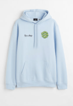 Las sudaderas de H&M vienen pensando en todos aquellos amantes de las películas, de series o de nuestro grupo de música favorito. Para ello, nos traen como primera opción esta sudadera azul clarito que tendrá un diseño amplio por la espalda de la serie de animación Rick y Morty.