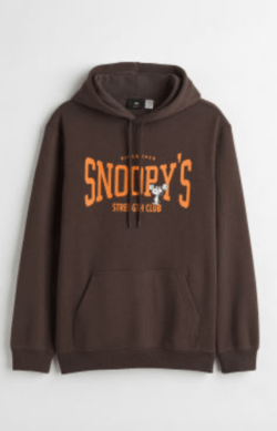 En el caso de que seas un amante de las series de animación mas clásicas, en H&M también han pensado en ti, como en esta ocasión, que nos traen una sudadera marrón con toques naranjas de Snoopy.
