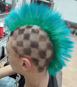 Obviamente, el efecto cresta lo conseguimos con el lateral afeitado, aunque también puede ir simplemente rapado, y de esta manera le damos una vuelta a la cresta habitual. Lo del tinte es opcional.