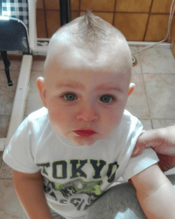 Si se las hacemos durante el baños, ¿por qué no para el día completo? Este bebé es rematadamente guapo, pero no hace falta ser un angelito para que una cresta prematura quede genial. Una vez que crezca y pueda decidir, a lo mejor decide continuar con su look atrevido.