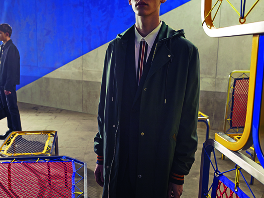 El estilo “college” se fija en logos y en estampados así como colores que suelen ser constantes en la moda escolar. Con ello la colección Dior Homme queda marcada por las chaquetas o blazers que lucen las iniciales de la firma a modo de logo o la presencia de abrigos que parecen sacados de un auténtico uniforme escolar.