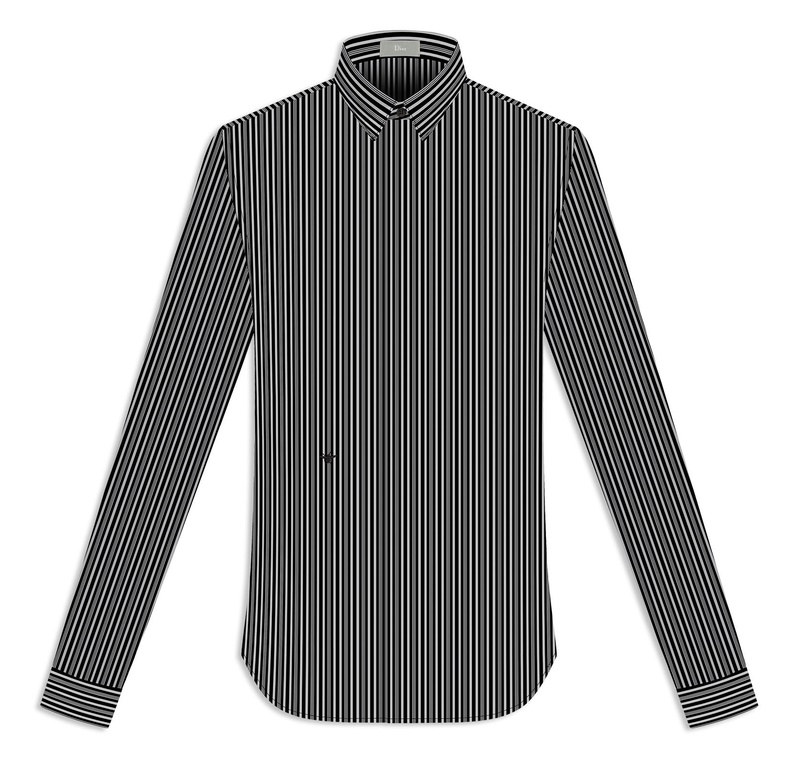 Una camisa como la de esta imagen, de twill de algodón con estampado rayado doble, una prenda elegante y muy distinguida que además parece personalizada gracias al bordeado de la Abeja, en negro. ¿Eres capaz de encontrarla?.