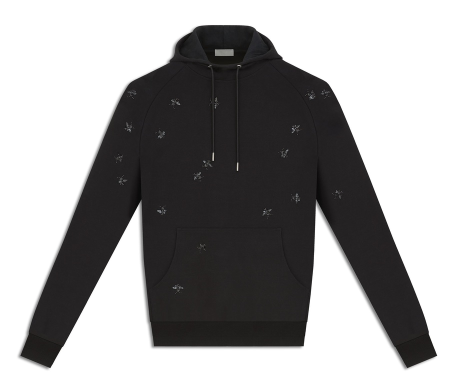 Sudaderas clásica, tipo polo y con bordados de la firma “la Abeja” de la Maison. Una preciosa sudadera confeccionada en punto doble, en color negro y con capucha. Una prenda que desprende elegancia y sofisticación, a pesar de ser una prenda meramente deportiva.