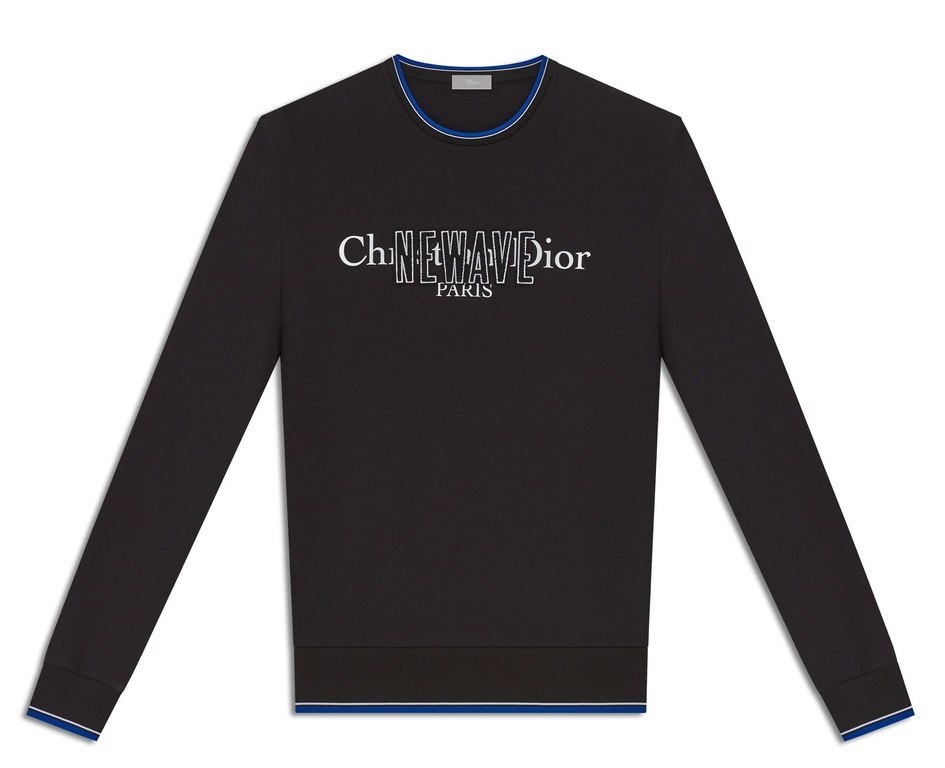 Confeccionado en algodón suave y confortable en negro, esta sudadera dispone de detalles como son los bajos, cuello y puños con ribete en color a contraste. Otros detalles como el lema de la colección New Wave sobre el nombre de la firma Christian Dior París. Las sudaderas como prenda deportiva también tiene su cabida dentro del nuevo catálogo Christian Dior Primavera Verano.
