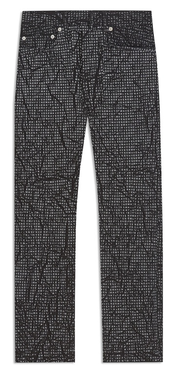 Los pantalones vaqueros tampoco pueden faltar en el nuevo catálogo Christian Dior Primavera Verano. Se trata de un diseño diferente, donde el tema de la colección “Newave”, se presenta estampado en todo el tejido denim de algodón, un pantalón de corte recto. Otro detalle a destacar es el efecto arrugado del tejido.