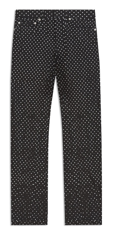 Tampoco podemos olvidar el otro elemento importante en la nueva colección de Christian Dior para hombre Primavera Verano. Se trata de los topos blancos sobre un tejido vaquero de algodón negro. Como detalle a destacar el efecto arrugado que provoca su estampación.