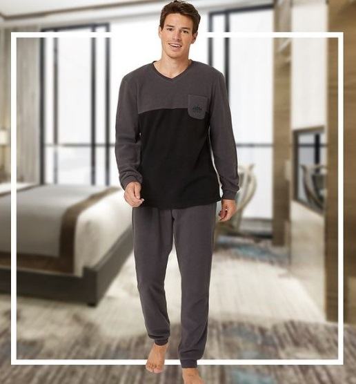 Puedes elegir así por ejemplo el pijama micropolar que abriga más con pantalones de cuadros o también el pijama, del mismo estilo pero que destaca por su color rojo.