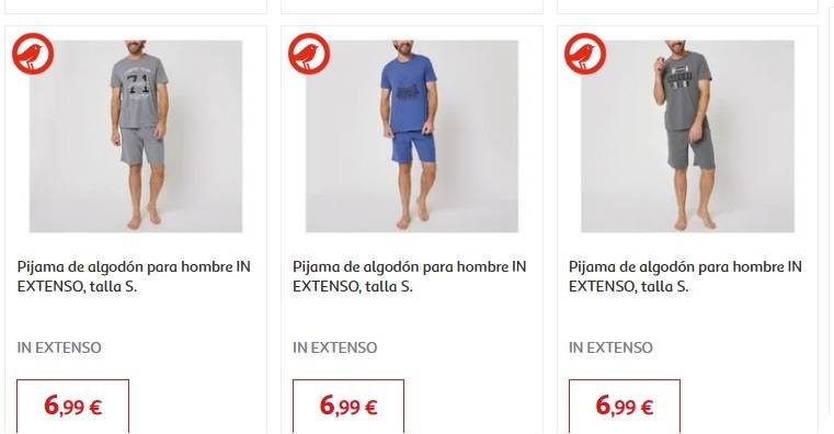 Sin salir de lo actual, otro pijama de algodón de dos piezas, que bien vale para bajar a la piscina o a la playa. Moderno, divertido y muy fresco para las noches de verano. Aunque lo mejor es su precio: 4,99 euros. Uno de los grandes chollos de este catálogo Rebajas Alcampo Verano