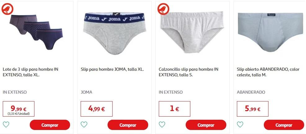 En cuanto a calzoncillos, puedes elegir una mayor variedad, teniendo en cuenta que podemos encontrar calzoncillos del tipo slip que se venden en packs de 3 o también los del tipo boxer que se venden de la misma manera, es decir, en packs de tres. Puedes encontrarlos en precios a partir de 10 euros el pack, pero también una vez comiencen las rebajas los habrá más baratos o puede que te hagan la oferta de que si compras un segundo pack se te queda a mitad de precio.
