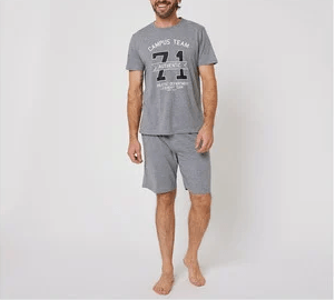 Otra alternativa es este pijama gris, también de dos piezas, de algodón In Extenso pero algo más caro pues se va a 6,99 euros. ¿El motivo? Su diseño es algo más exclusivo que los anteriores del catálogo Rebajas Alcampo Verano. Eso sí, un pijama de hombre por ese precio sigue siendo un regalo.
