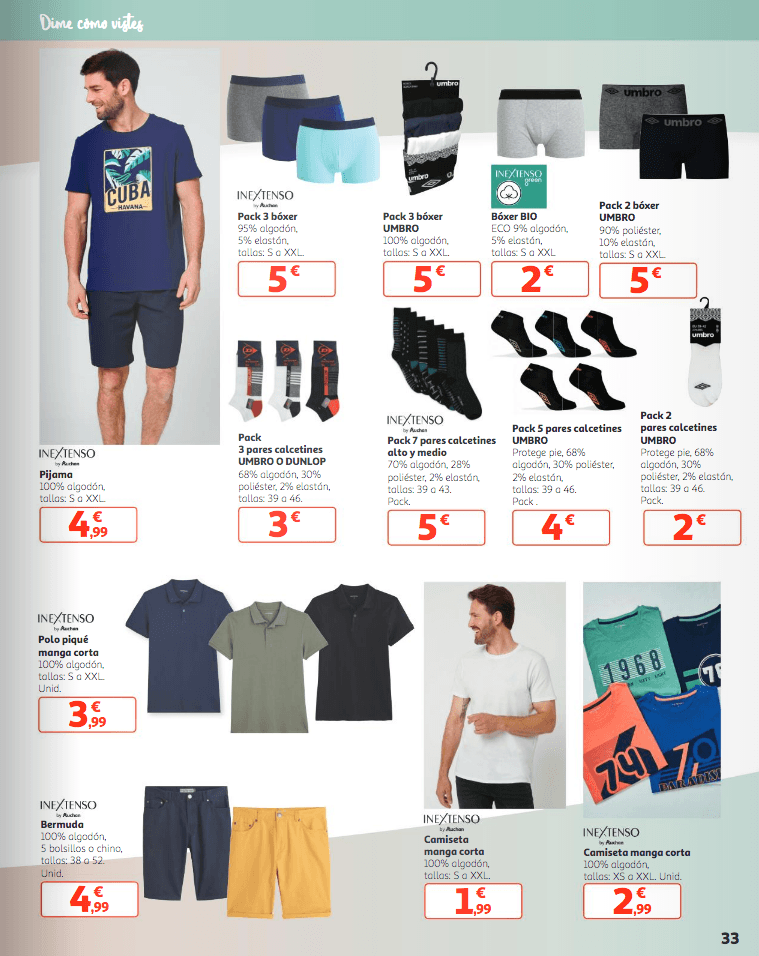 No obstante, son los bóxer los que arrasan en el Catálogo Rebajas Alcampo Verano. Su amplia variedad de marcas, sumada a modelos sin costuras, cómodos, modernos y a muy buen precio, han convertido Alcampo en un punto de referencia de la ropa interior masculina.