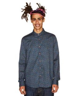También en el nuevo catálogo de United Colors of Benetton Otoño Invierno2023, encontramos modelos muy variados de camisas aunque predominan como no, los modelos de camisas con estampados “micro” o de estilo “retro” como la que os queremos mostrar a continuación que cuenta con micro-estampado, diseño “slim” y además con un acertado color azul marino.