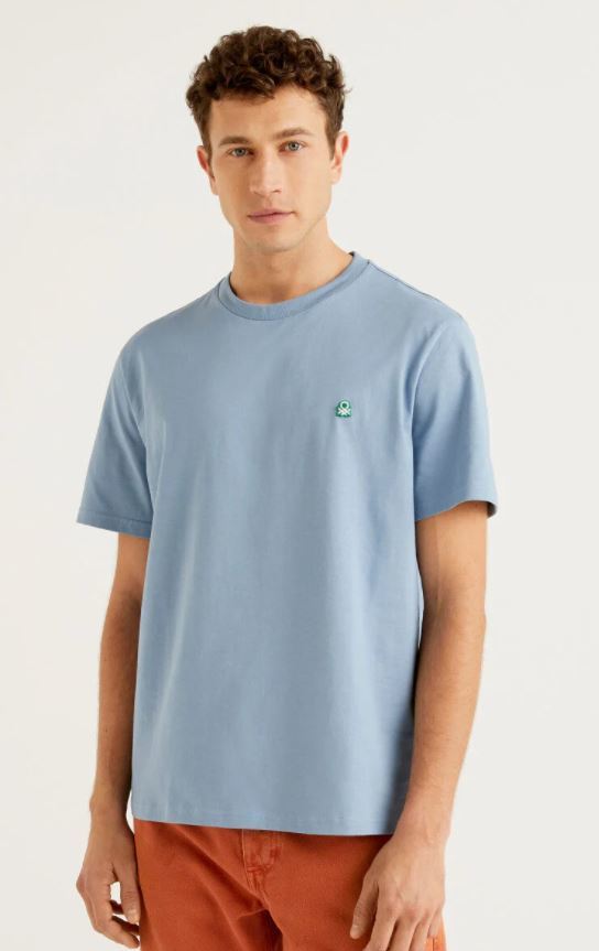 No todas las camisetas básicas de las que puedes encontrar en el catálogo United Colors of Benetton primavera verano son de colores llamativos, puedes optar por colores mas crema, como este azul pastel.