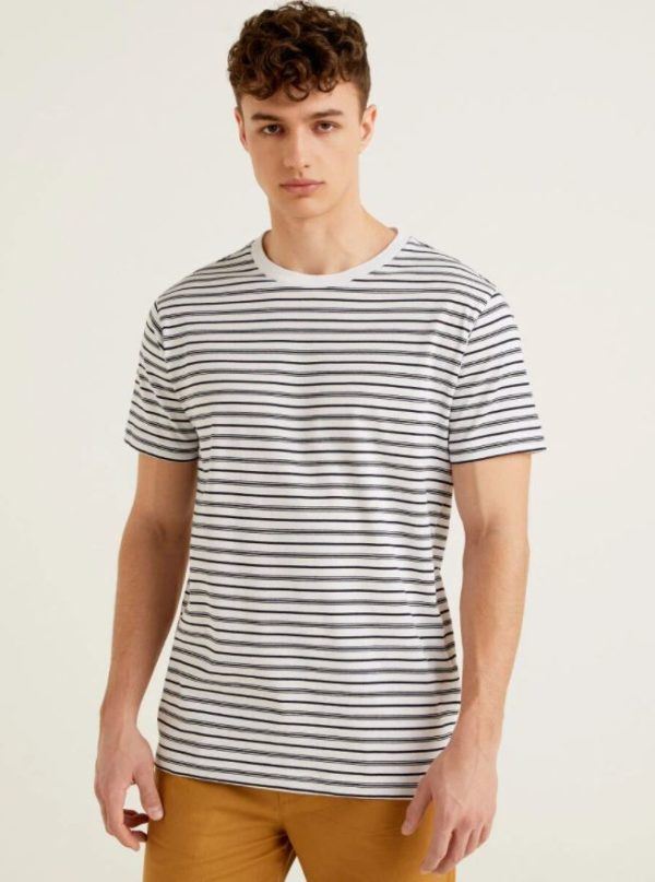 Si quieres algo mas variedad del catálogo United Colors of Benetton primavera verano puedes hacerte con camisetas mas coloridas, como esta que mezcla rayas rojas y blancas.