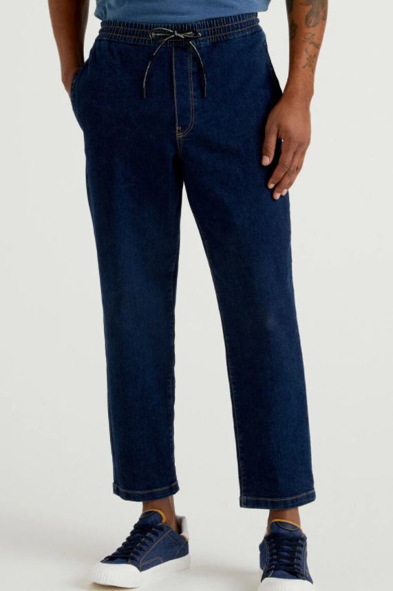 Pero no todos los pantalones del catálogo United Colors of Benetton primavera verano son lo que parecen, sino solo tienes que observar este pantalón que aunque parezca que tenga un tejido de vaquero, se trata de un jogger con las costuras y la cintura con un elástico, para que puedas estar mas cómodo en tu día a día.