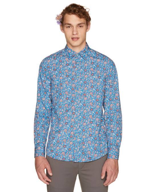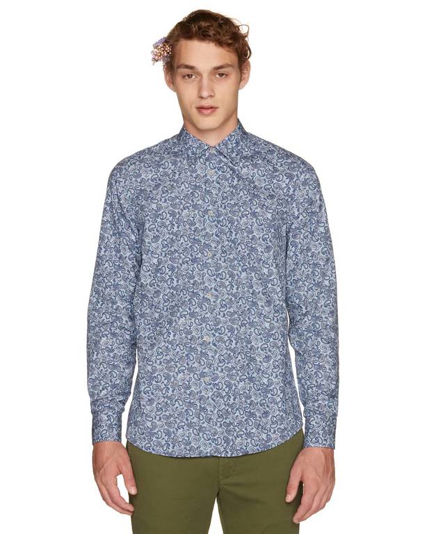 También en el nuevo catálogo de United Colors of Benetton Otoño Invierno2023, encontramos modelos muy variados de camisas aunque predominan como no, los modelos de camisas con estampados “micro” o de estilo “retro” como la que os queremos mostrar a continuación que cuenta con micro-estampado, diseño “slim” y además con un acertado color azul marino.
