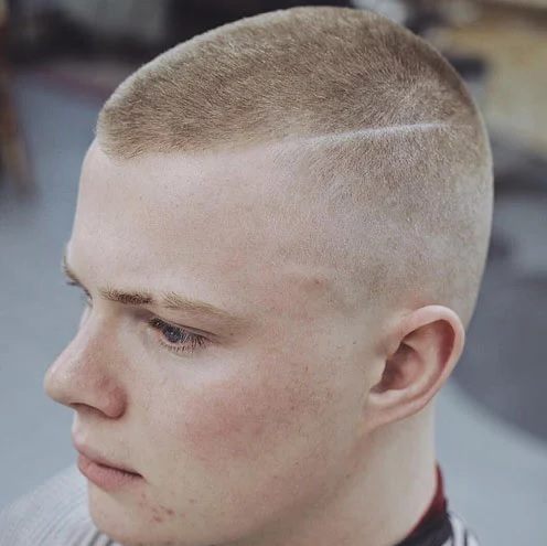 Más adecuado para aquellos que tienen cabezas cuadradas o más ovaladas (y especialmente aquellos con pómulos impresionantes), el corte buzz es un corte de apariencia totalmente masculina.