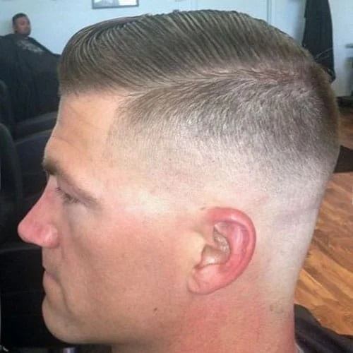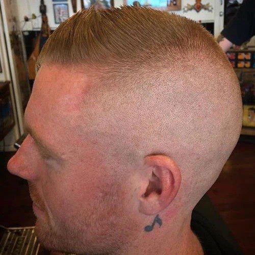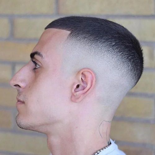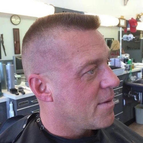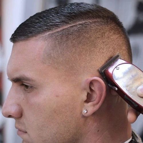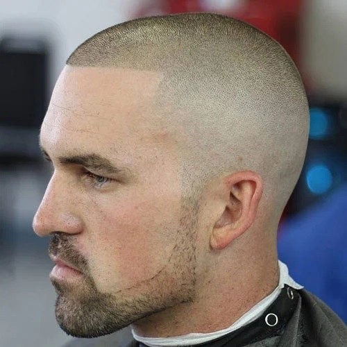 El corte de pelo militar que empezó todo. También conocido como corte rapado este es el corte de pelo militar más clásico y el más corto que un hombre puede hacerse. A menudo es el tipo de corte que se hace a los nuevos reclutas a las pocas horas de unirse al ejército el corte rapado (que técnicamente se refiere al cabello que se corta a la misma longitud con maquinilla) es la elección perfecta para los hombres que quieren un corte de bajo mantenimiento.