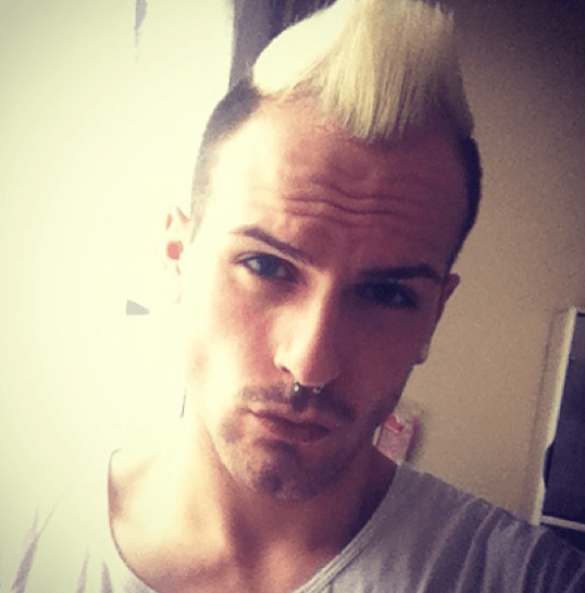 Y si lo que quieres que limitar la cantidad de pelo a la mínima expresión, tienes la opción de esta cresta mínima, muy mohicana y teñida de verde. Cuando te canses de ella, cabeza afeitada y a otra cosa. Uno de los peinados con cresta para hombre con pelo corto más recomendables porque puede durar desde un día a varias semanas.