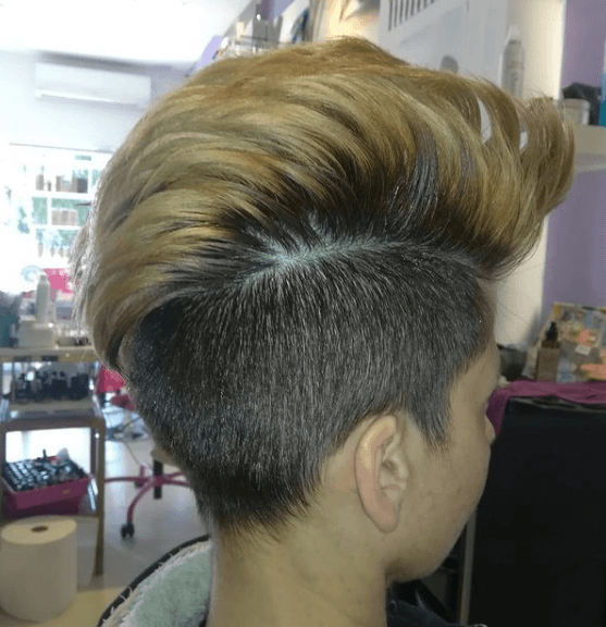 Obviamente, el efecto cresta lo conseguimos con el lateral afeitado, aunque también puede ir simplemente rapado, y de esta manera le damos una vuelta a la cresta habitual. Lo del tinte es opcional.