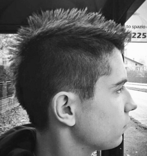 No obstante, si algo nos ha enseñado el mundo de la estética, es que no todo debe ser como está estipulado. Así, una cresta no tiene que estar hacia arriba y esta foto lo demuestra. Con los laterales afeitados a cuchilla, tan sólo queda el cabello de la parte superior. En este caso, en vez de levantarlo, lo dejamos caer.