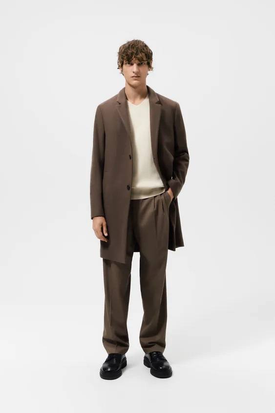 Imprescindible es también el abrigo de lana, de corte recto y en color camel. Un clásico que no podía faltar en este nuevo catálogo de abrigos de ZARA hombre para otoño-invierno/2022.