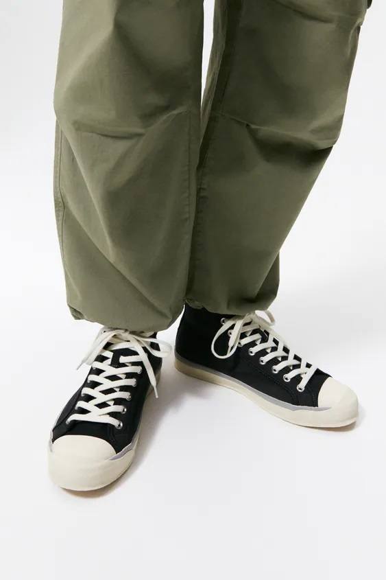 También, la zapatilla o bamba canvas, un estilo de calzado deportivo que estuvo muy de moda en la década de los 80 y que ZARA recupera esta temporada para conseguir “looks” relajados e informales que podemos comprar en colores como el azul marino o el beige.
