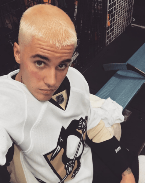 Pero quizás este no haya sido su color más llamativo aunque no podemos dudar que le sienta genial, también ha probado a experimentar con distintos colores como el morado, sino fijaros en la siguiente imagen. Un color que como todo lo que se ponga Justin, le sienta fenomenal.