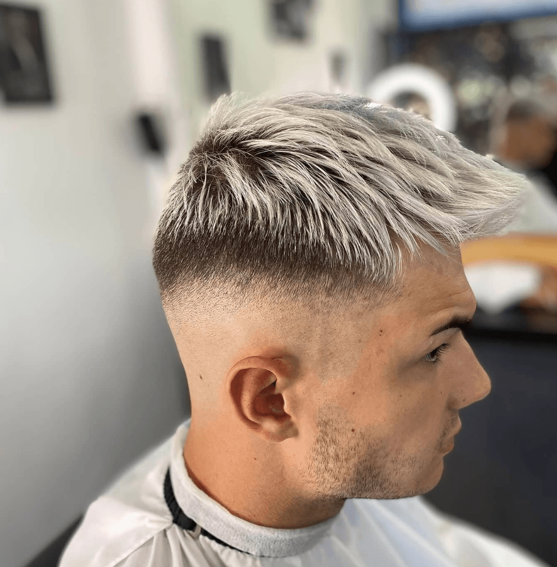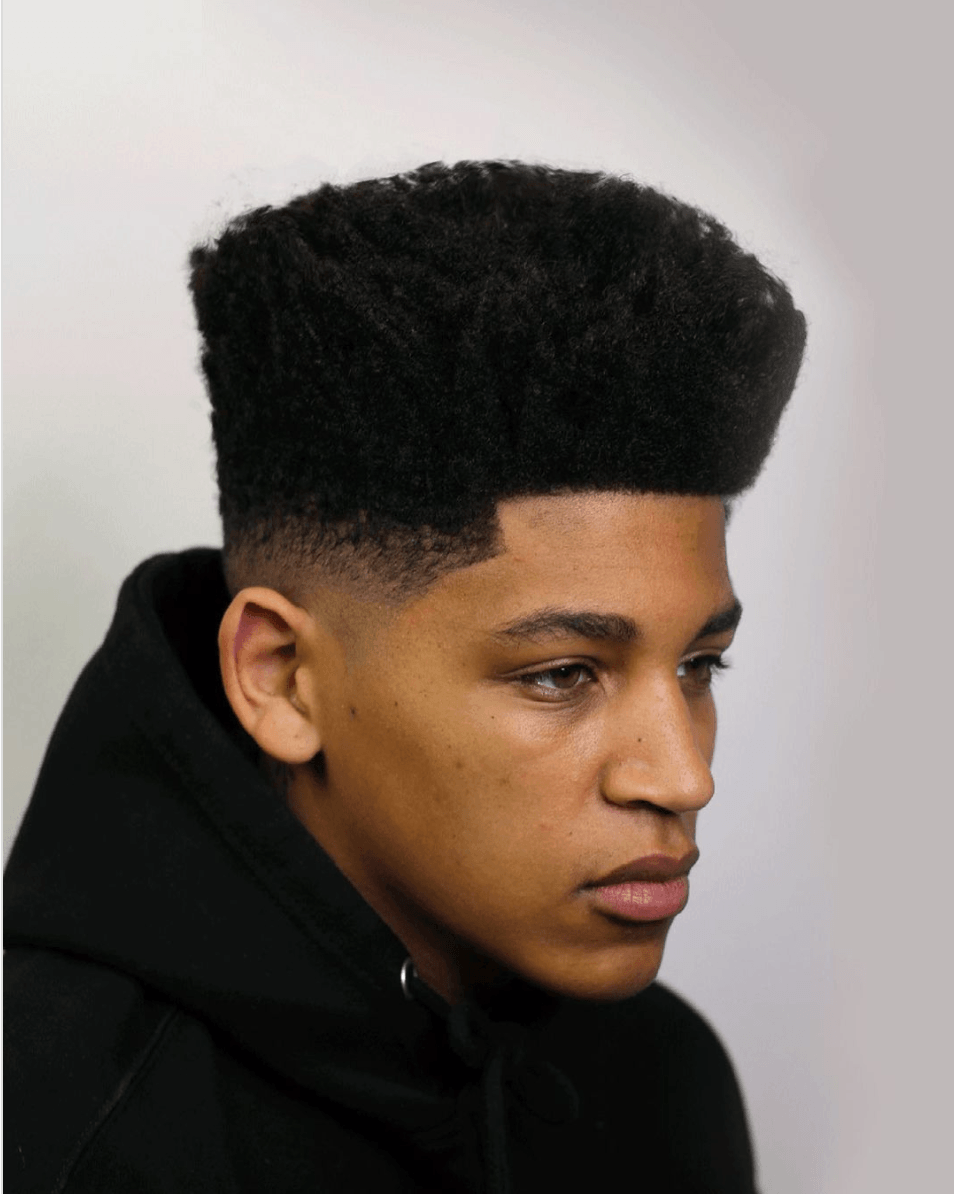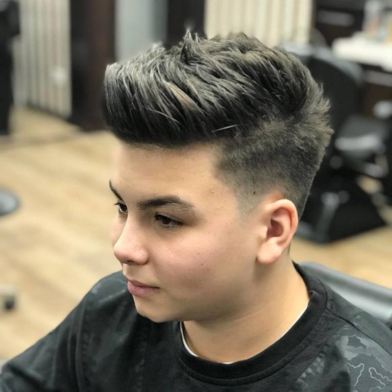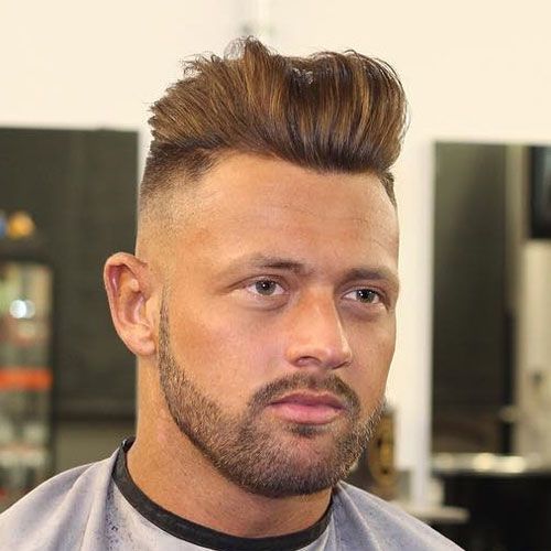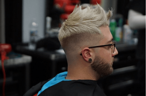 Una de las primeras tendencias entre los mejores cortes de pelo degradado para hombre verano, tenemos un estilo como el que vemos arriba. Con una base de degradado muy marcada, mientras que la parte media es más suave. La parte central se deja con el pelo ligeramente subido como si fuera un tupé.