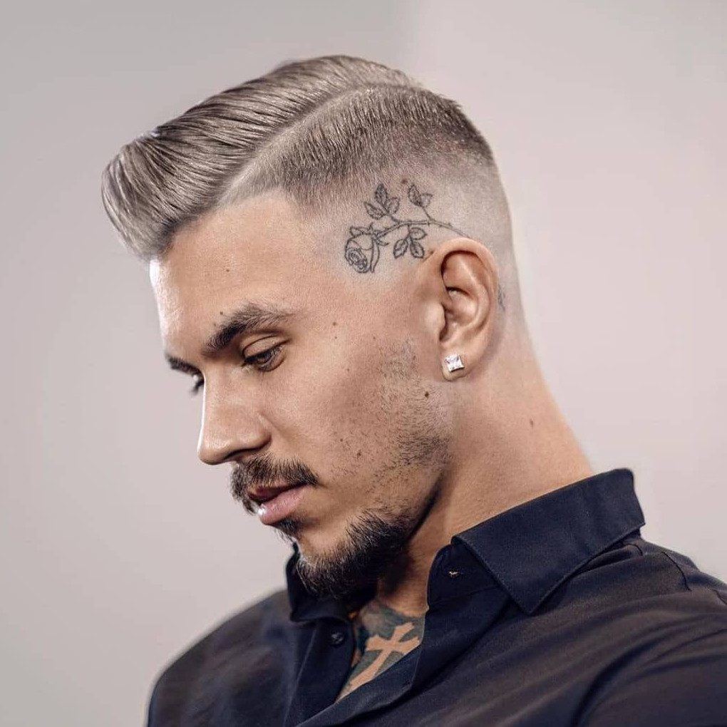Podéis también combinar vuestra raya y peinado hacia un lado, con un rapado que sea muy marcado.
