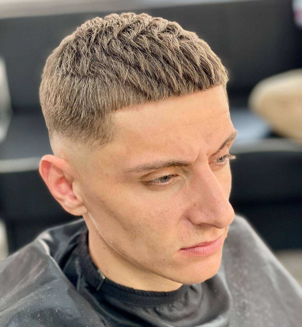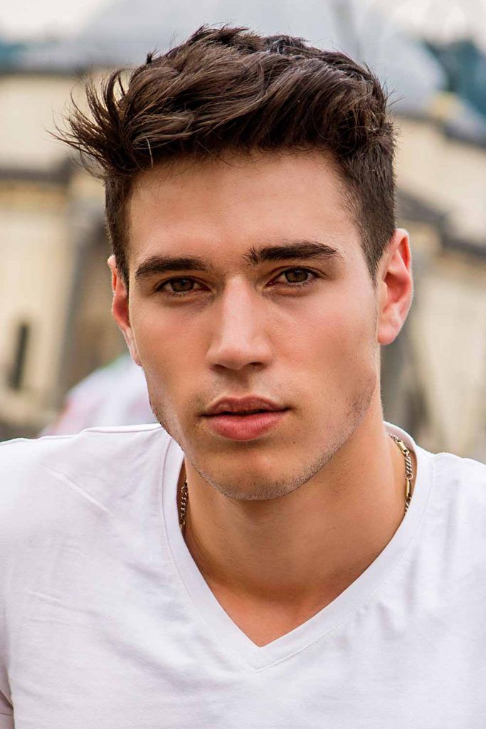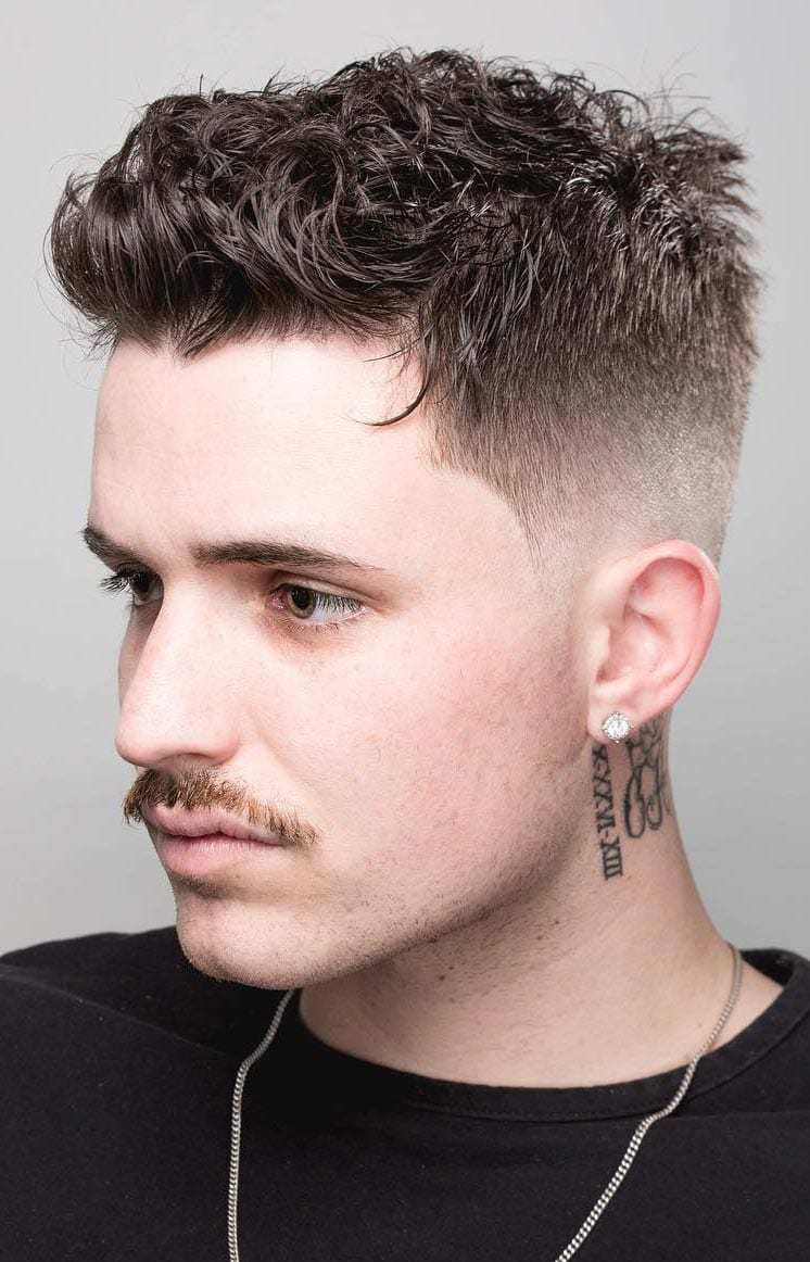El pelo corto y texturizado, con lados rapados es otro de los cortes de pelo corto que arrasan entre los hombres para este verano. Una vez cortado puedes elegir subirlo como vemos en la imagen a continuación.