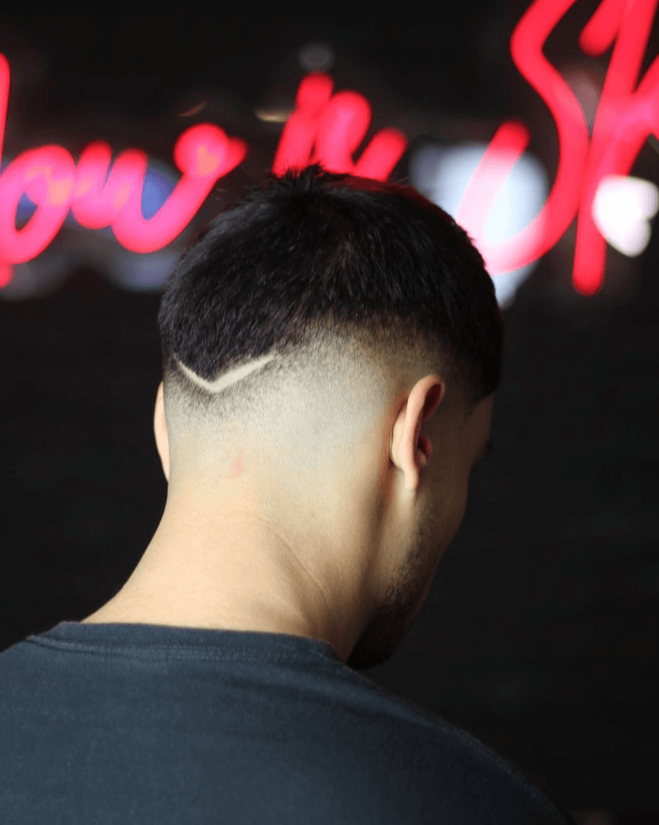 Dentro del degradado, es tendencia también hacer dibujos o rapar de modo que podamos crear algún diseño que marque estilo. Por ejemplo dos simples rayas como la que vemos en la imagen de arriba.