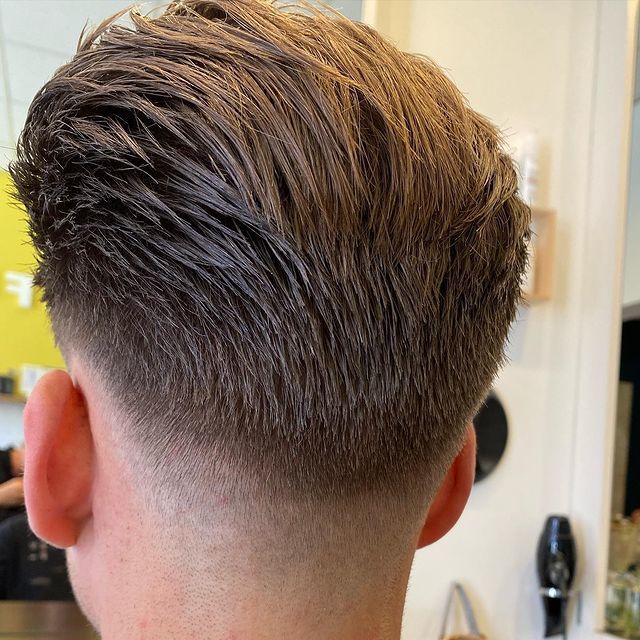 También podemos optar por dejar la parte central algo más larga, de modo que lo podamos peinar hacia atrás con un estilo muy de años 90 y un degradado que es más marcado en todas y cada una de sus capas.