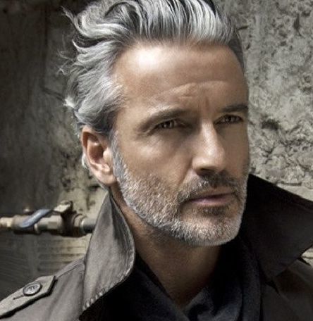 ¿Nos hemos olvidado del pelo hacia atrás? Para nada. Ahora que están tan de moda las telenovelas turcas, nada como recuperar el look de galán de los 80. Media melena hacia atrás, fijada con algo de laca y combinada con una barba muy recortada como de varios días. Sin duda, uno de los mejores cortes y peinados para hombres con pelo gris