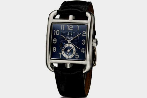De forma rectangular, este reloj Hermès Cape Cod GMT presenta una función GMT y una gran ventana de indicación de fecha y día y noche. El precio es algo más elevado por ser de la marca que es. Suele venderse por un precio en torno a los 1.500-1.700 euros.