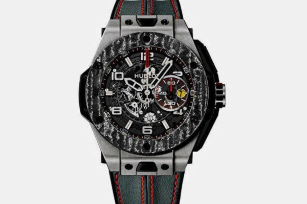 El nuevo Hublot Big Bang Ferrari Titanium Carbon mezcla, en su bisel, carbono y titanio, de una manera única. El modelo tiene una caja de titanio y cuenta con el caballo rampante de la marca Ferrari a las 9 en punto. El precio es auténticamente de locura si tenemos en cuenta que supera los 25.000 euros.