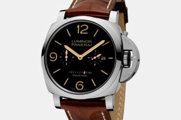 Con caja de acero y el protector de corona Panerai característico, el modelo presenta día, día de la semana y la complicación de la ecuación de tiempo. El precio supera los 8.000 euros.