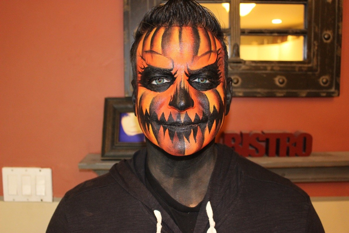 Puedes hacer además que sea un maquillaje muy terrorífico, al combinarlo con el estilo de maquillaje de calavera o de catrina, pero en lugar de una base blanca puedes usar una naranja.
