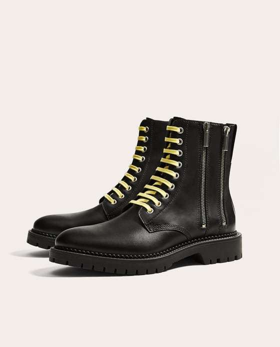 Y si buscas botas similares a las que os venimos mostrando aunque con un estilo realmente distinto, nada como decantarse por las que son botas del tipo “track”, que cuentan con un tipo de suela muy cómoda y resistente, inspirada en los modelos de botas que más se llevaban en los 90. El modelo que os mostramos a continuación es de la nueva colección de Zara.