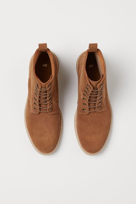 Para los que queráis algo más “refinado” nada como unas botas como estas que os mostramos a continuación. Por si queréis saber cómo se llaman es un modelo que se conoce como “safari” y las venden en tiendas como H&M. Se distinguen por ese tejido de ante tan bonito que ya os he mencionado antes y lo mejor de todo es que quedan genial con unos jeans, pero también con pantalones del tipo chino o incluso los del tipo “cargo”