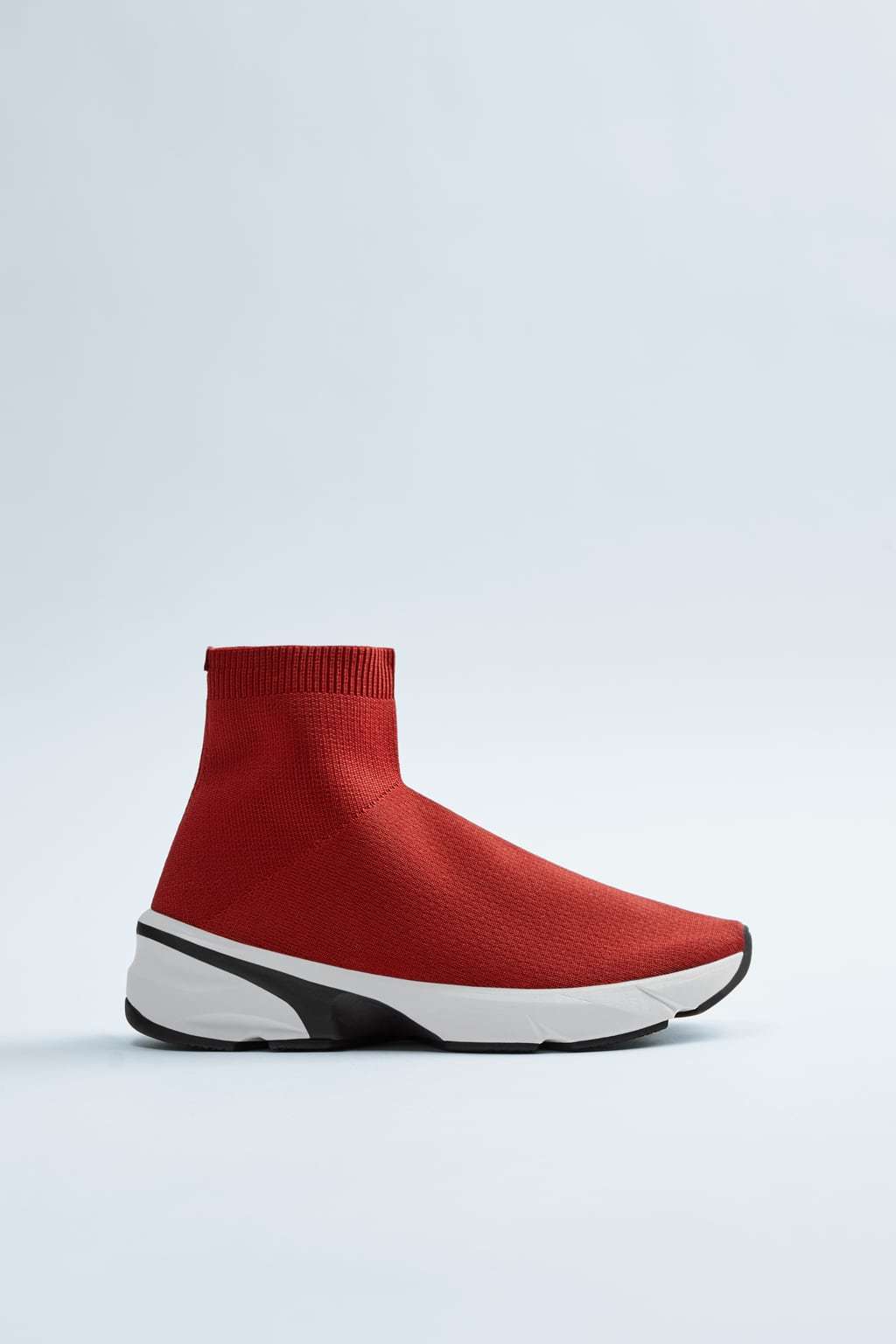 O te puedes decantar también por calzado deportivo que imite el estilo de las botas o botines que antes vimos. De este modo, podrás unir dos estilos y tendencias de calzado que no pasan desapercibidas. El modelo de la foto a continuación lo encuentras dentro de la nueva colección de Otoño Invierno2023 de Zara.
