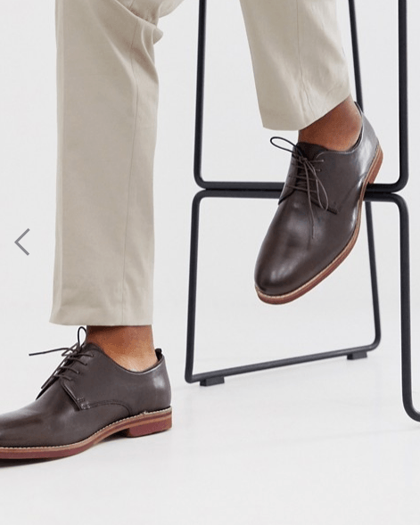 En la foto de arriba os mostramos un modelo de zapato cerrado de la nueva colección de Asos. Es un modelo del tipo “blucher” con un pequeño “picado” en la piel y con la punta redondeada. Es un modelo perfecto para un traje pero también se pueden llevar incluso con unos jeans o con un pantalón “chino”.