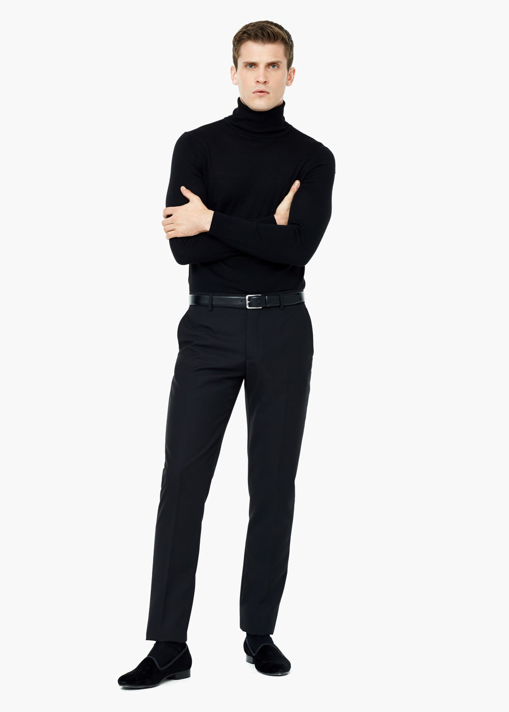 Aquí os mostramos de un “look” informal en el que la opción jersey vuelve a ser nuestra elección. Puede que el color negro os parezca demasiado sobrio para un “look” informal pero lo cierto es que es tendencia para la Navidad. Es una propuesta de Mango muy acertada que puedes llevar como en la foto, con pantalón de vestir o si lo prefieres con un tejano negro pitillo.