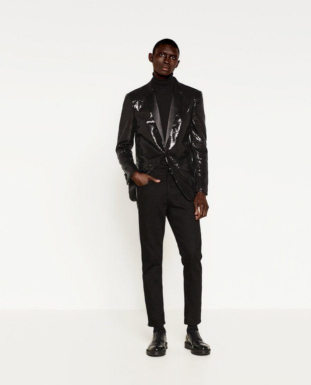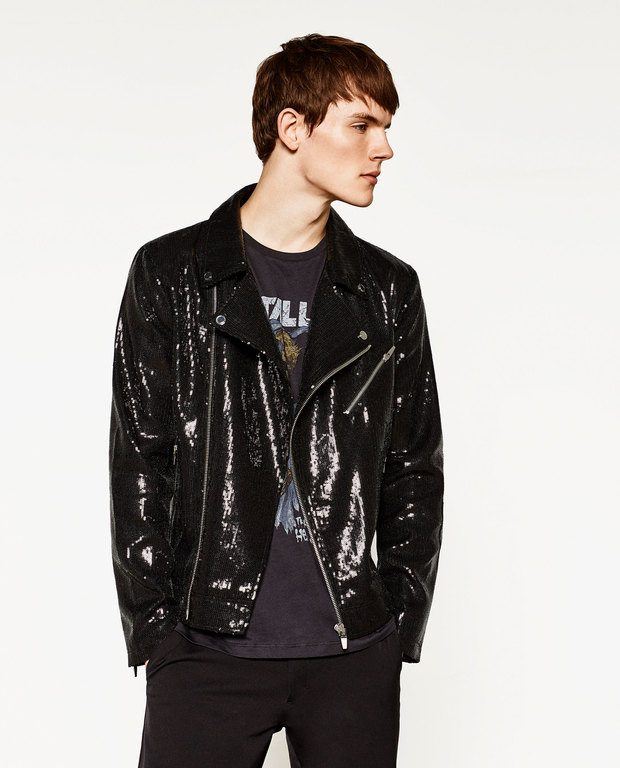 El biker de lentejuelas es otra de las prendas estrella de la nueva colección de ZARA para hombre de estas navidades, en especial esta que vemos, en lentejuelas. Es tan sorprendente que no puede faltar en tu armario estas navidades. Ni siquiera necesitarás vestir de un modo especial para llevarla, ya que viste sola, eso es lo mejor.