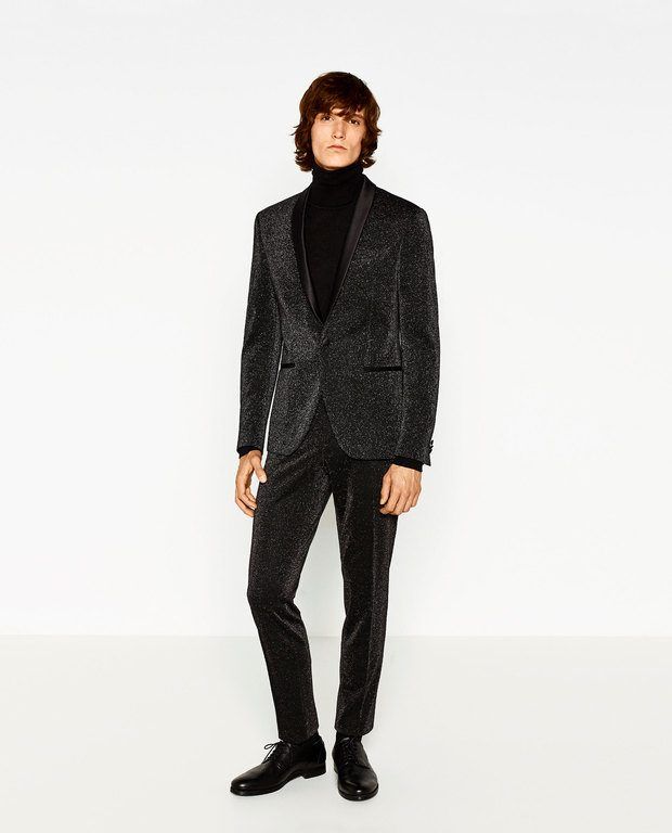 Como este traje de fiesta de ZARA hombre para navidad con brillos. Recuerda que el corte se lleva por encima del tobillo, pero si debes hacerte el bajo para que te quede bien, siempre puedes dejarlo como a ti más te guste. No todas las tendencias tienen por qué motivarte.