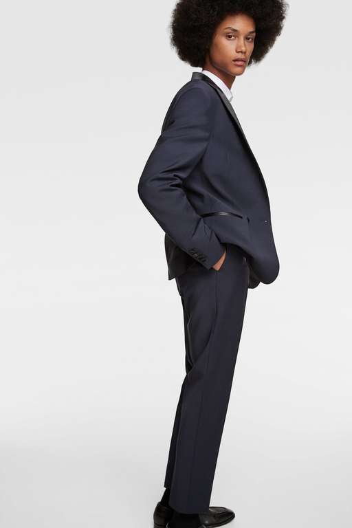 El frac es uno de las prendas estrella de la nueva colección de ZARA hombre para esta Navidad. ¿El motivo? Es elegante, festivo, ideal para fin de año o cualquiera de las noches en las que salgamos estas navidades, perso sobre todo, porque lo combina con elementos más casuales, menos formales, lo cual le resta mucha seriedad a esta prenda de suma elegancia y le aporta un toque irreverente.