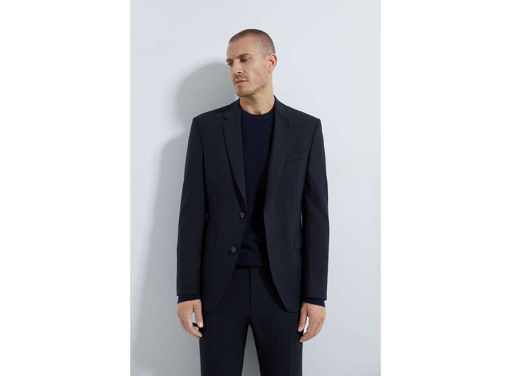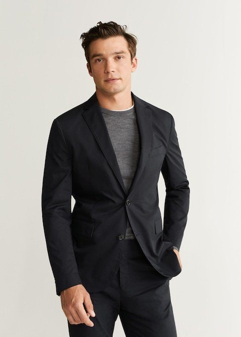 La última propuesta que te traemos en trajes para la Moda Hombre Navidad es ésta americana slim fit de tejido técnico de Mango. De la Línea Smart de Mango, su diseño es corto y está fabricada en algodón. Elegante pero casual, es ideal para llevar sin camisa y con un pantalón a juego o un vaquero. La tiene en Mango a un precio de 79,95 euros.