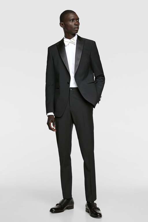 El smoking de Zara está compuesto por tres prendas: blazer (99,95 euros), pantalón (49,95 euros) y camisa blanca (29,95 euros). Es decir, tienes las tres piezas del smoking por 179,85 euros, mucho más económico que otras marcas. Y el resultado, salta a la vista. Sin duda, una de las opciones más destacadas y recomendadas de la Moda Hombre Navidad.