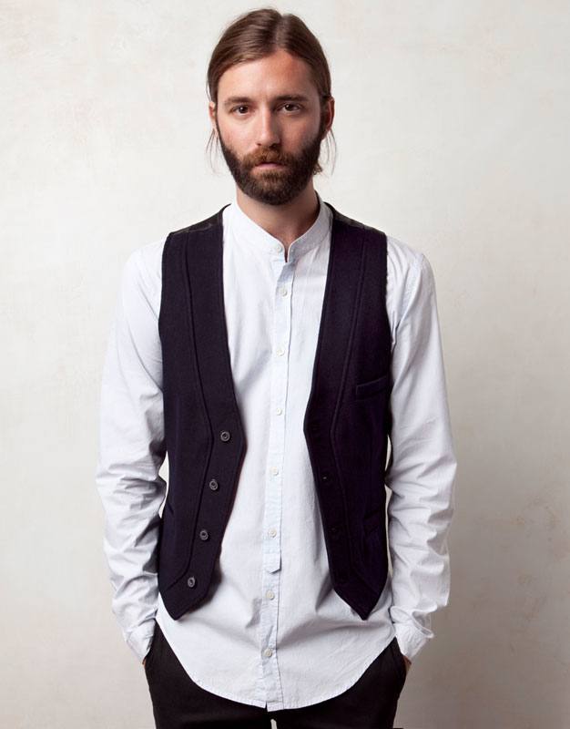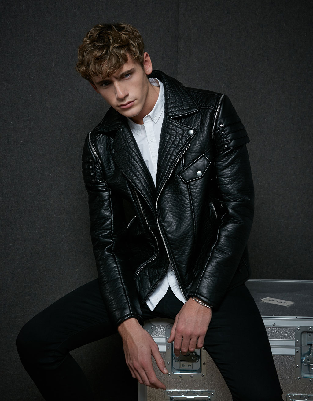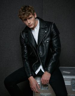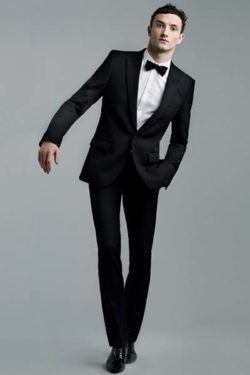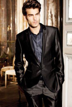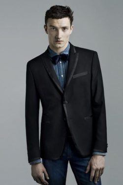 Si tenéis un espíritu algo “rebelde” no tenéis porque abandonarlo durante Nochevieja. De hecho podéis lucir como vemos arriba, con una espectacular cazadora motera (de Berhska) y que combina muy bien con unos jeans negros y una simple camisa blanca. Puede que penséis que este es un “look” demasiado juevenil, pero lo cierto es que todo tipo de hombres se pueden ver perfectos con él.
